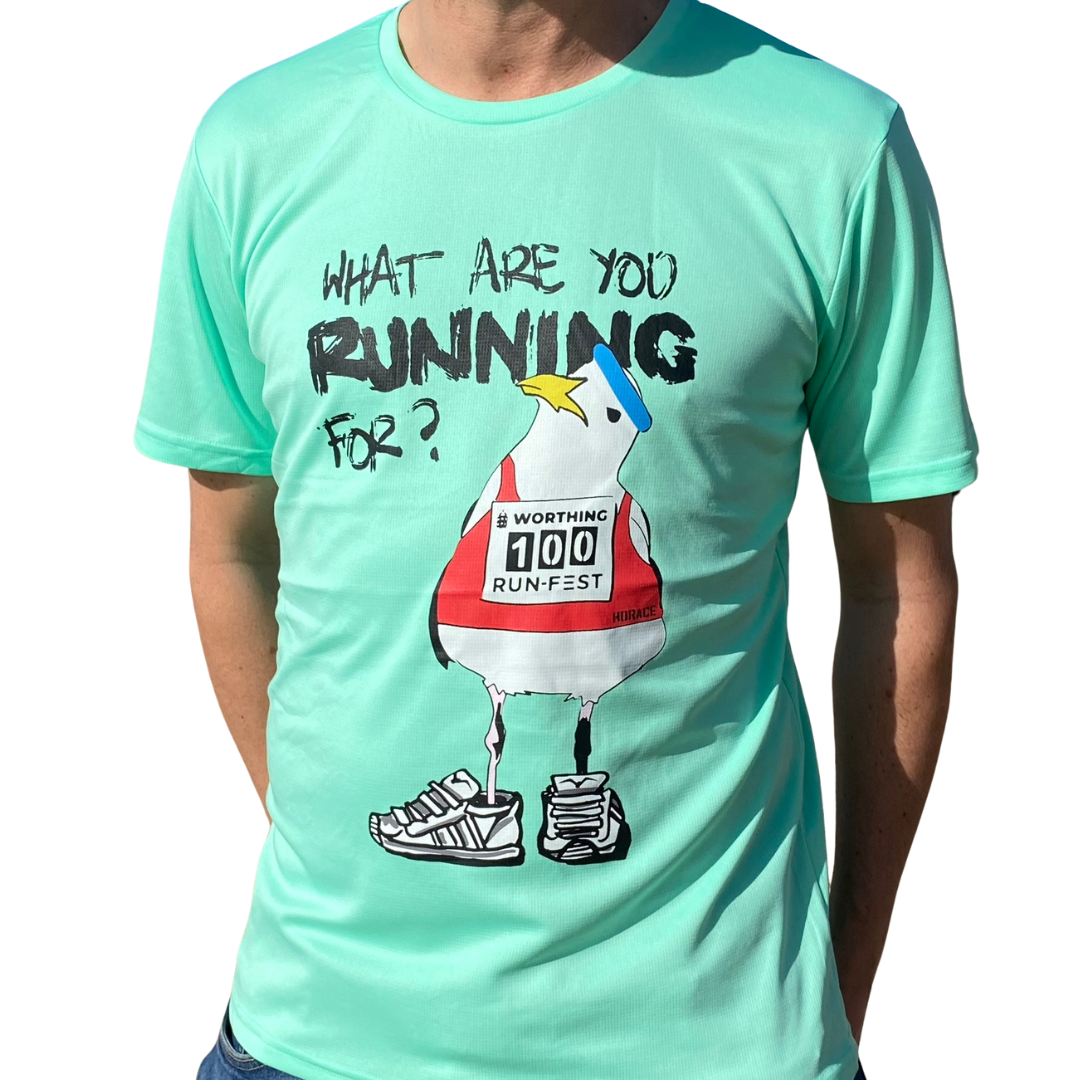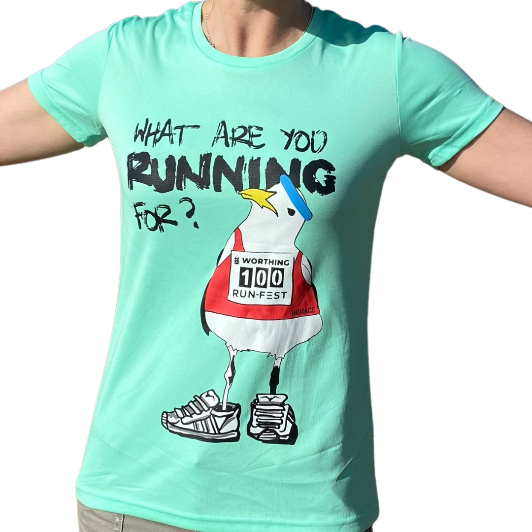 Local artist HORACE put this question on a tee shirt & it's beautiful! The tee has 'RUN WORTHING' on the back incase you get lost at other races.
